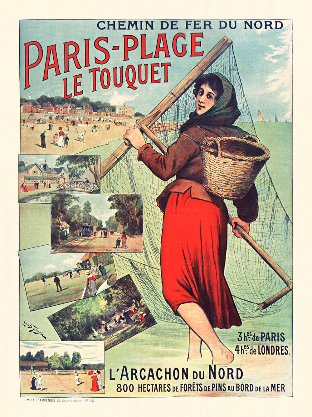 Le Touquet Travel Poster: Paris-place le Touquet by Louis Tauzin, 1900