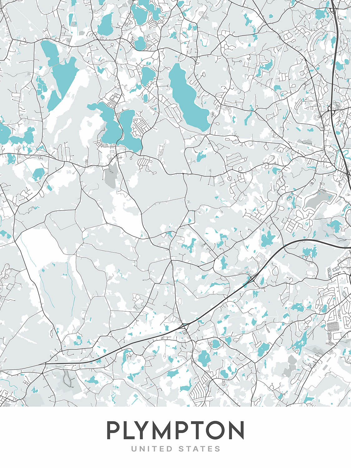 This modern map of Plympton, Massachusetts, is a detailed and stylish representation of this charming New England town. The map covers a generous area, extending approximately 9 miles to the north and south of the town center, and 7.5 miles to the east and west. This ensures that all of Plympton's most notable neighborhoods, landmarks, and thoroughfares are captured in meticulous detail.
