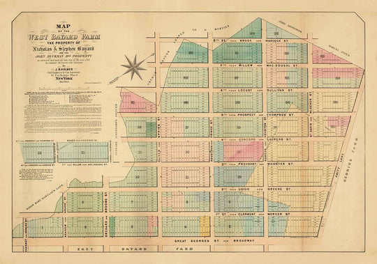 This map covers what is now known as SoHo (or South of Houston). But, if that wasn't interesting enough, the map also shows the farmland that SoHo was built upon.It is a little hard to believe today, but at the start of the 19th century most of Manhattan was still farmland. Here, the map shows that SoHo used to be West Bayard Farm, the property of Nicholas & Stephen Bayard.
