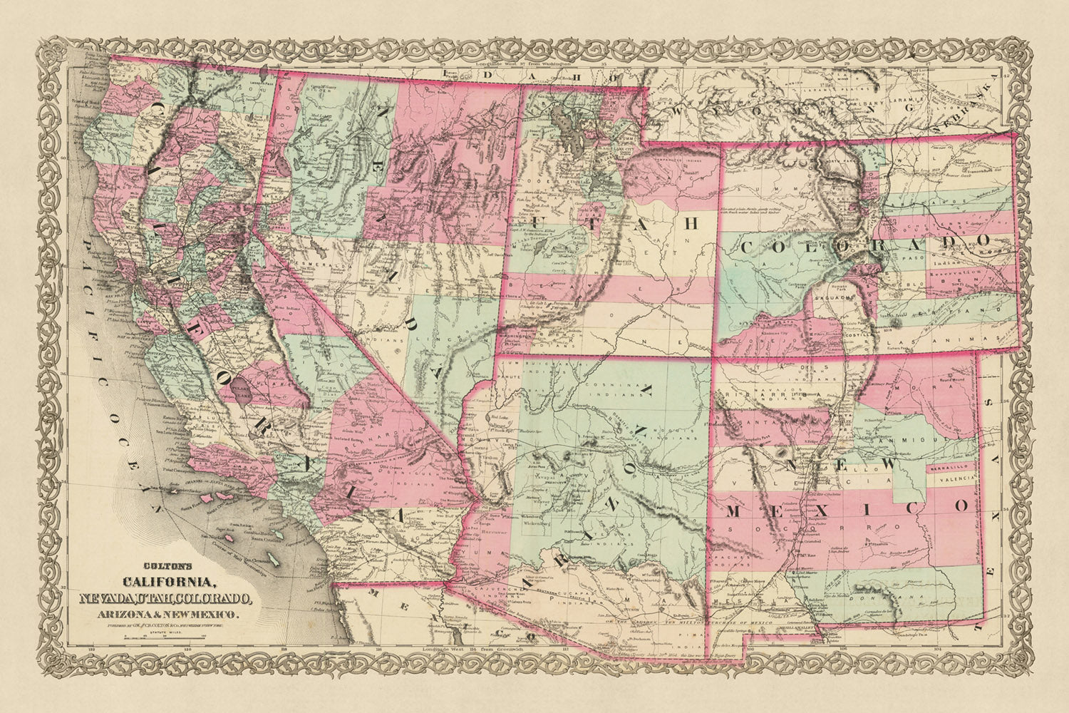 In conclusion, this old map of California, Nevada, Utah, Colorado, and Arizona & New Mexico by J.H. Colton is a treasure trove of historical information and a beautiful artifact. Its detailed depiction of the Western United States in 1871, featuring the five most notable settlements of the time, makes it a valuable piece for any collector or history enthusiast. This map is more than just a piece of paper; it's a journey back in time, a window into the past, and a testament to the skill and artistry of one of America's finest mapmakers.