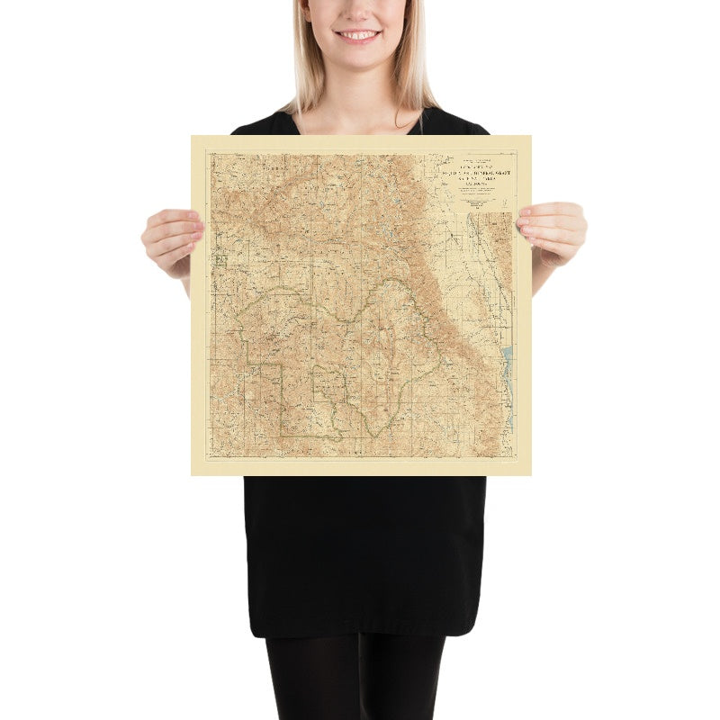 Old Topographic Map of Sequoia & Gen Grant NPs, 1927: Mt Whitney, Great W Divide, Kings Canyon, Sherman Tree, Mineral King