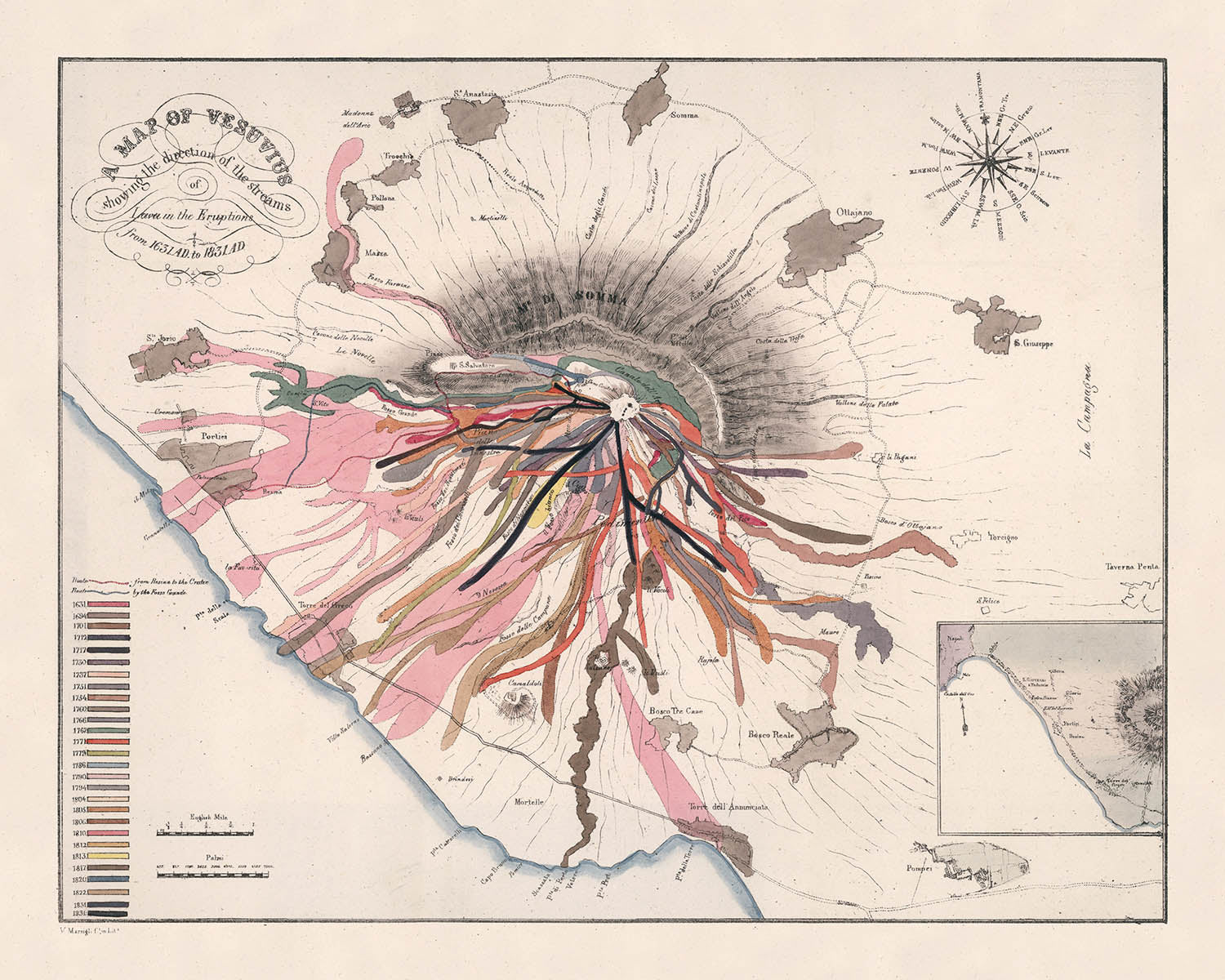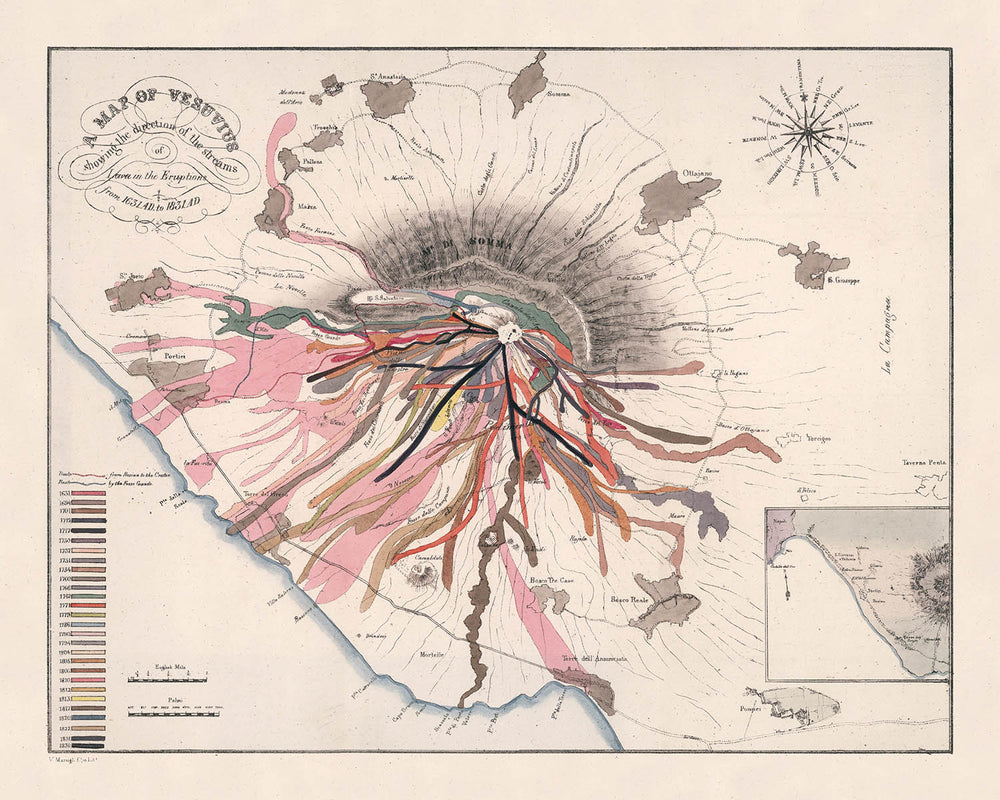 - Title: Map of Vesuvius showing the direction of the streams of Lava in the Eruptions from 1631 AD to 1831 A.D.