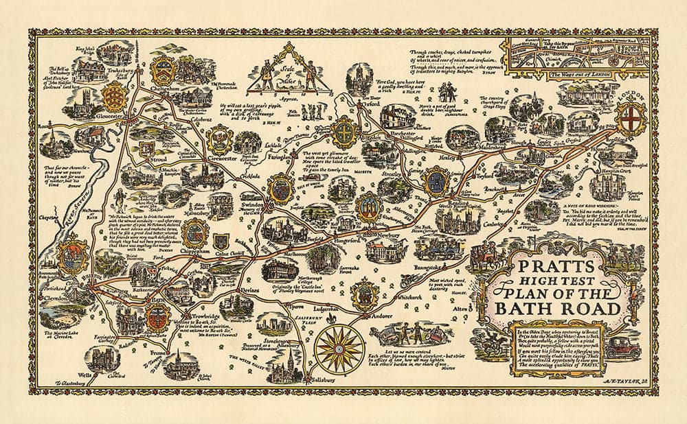 Pratts Plan of Bath Road, 1930 by A.E. Taylor: London, Berkshire, Wiltshire, Gloucestershire, Somerset