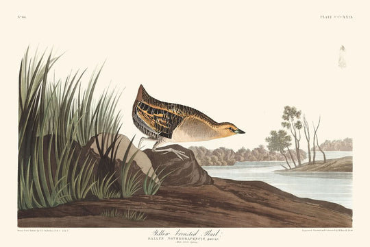 John James Audubon is celebrated for his profound contributions to ornithology and natural history. His Birds of America is a monumental work consisting of 435 hand-colored prints, celebrated for its life-sized depictions and the striking detail of its avian subjects. Among these, the Yellow-breasted Rail stands out for its rarity and the fascinating narrative attached to its habits and habitat extending from the Floridas to the edges of Hudson's Bay.