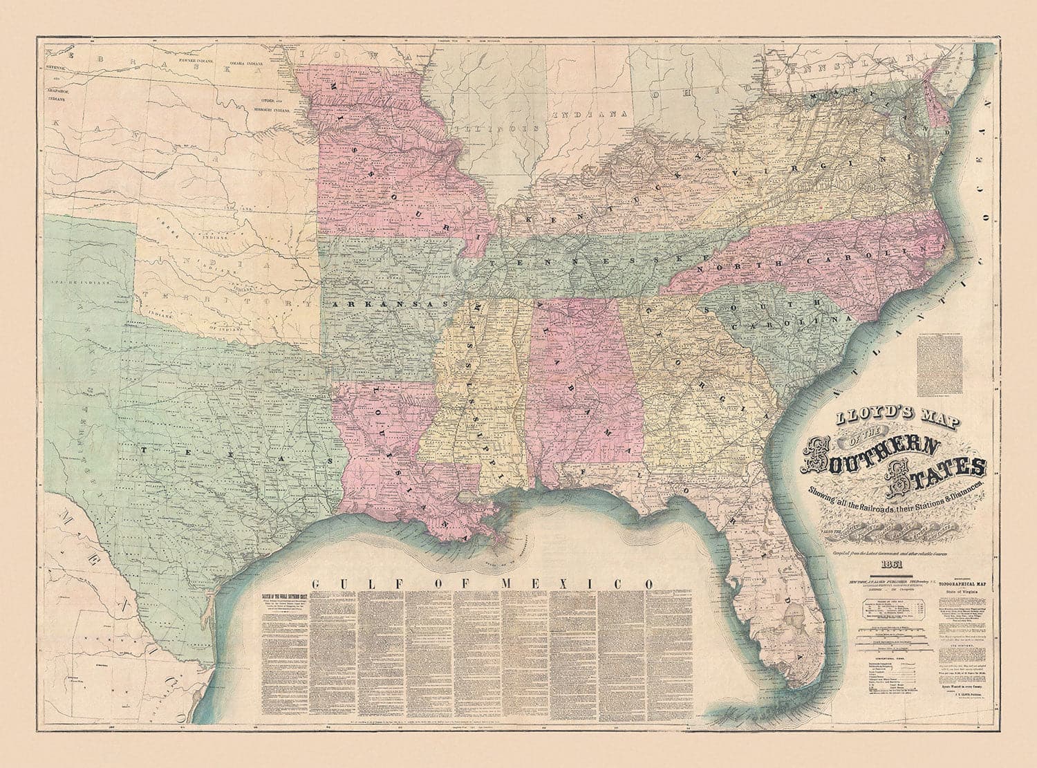 Lloyd's Map of the Southern States, 1862: Rare Old Confederacy Civil War Map