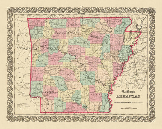 As you delve deeper into this map, you'll discover a wealth of historical details waiting to be uncovered. Whether you're a history enthusiast, a map collector, or simply someone who appreciates fine craftsmanship, this old map of Arkansas by J.H. Colton is a must-have addition to your collection.