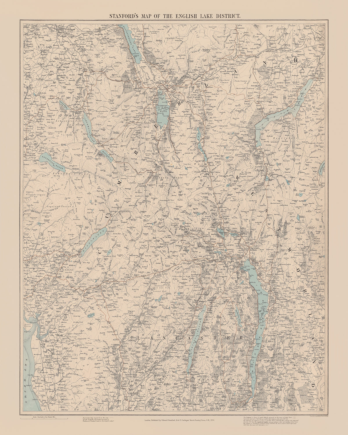 Edward Stanford, a prominent figure in the world of cartography, was renowned for his precision and dedication to accuracy. His maps were highly regarded for their detail and reliability, making them indispensable tools for explorers and scholars alike. The creation of this map in 1899 coincided with a period when the Lake District was gaining popularity as a destination for tourists and outdoor enthusiasts, drawn to its stunning landscapes and serene waters.