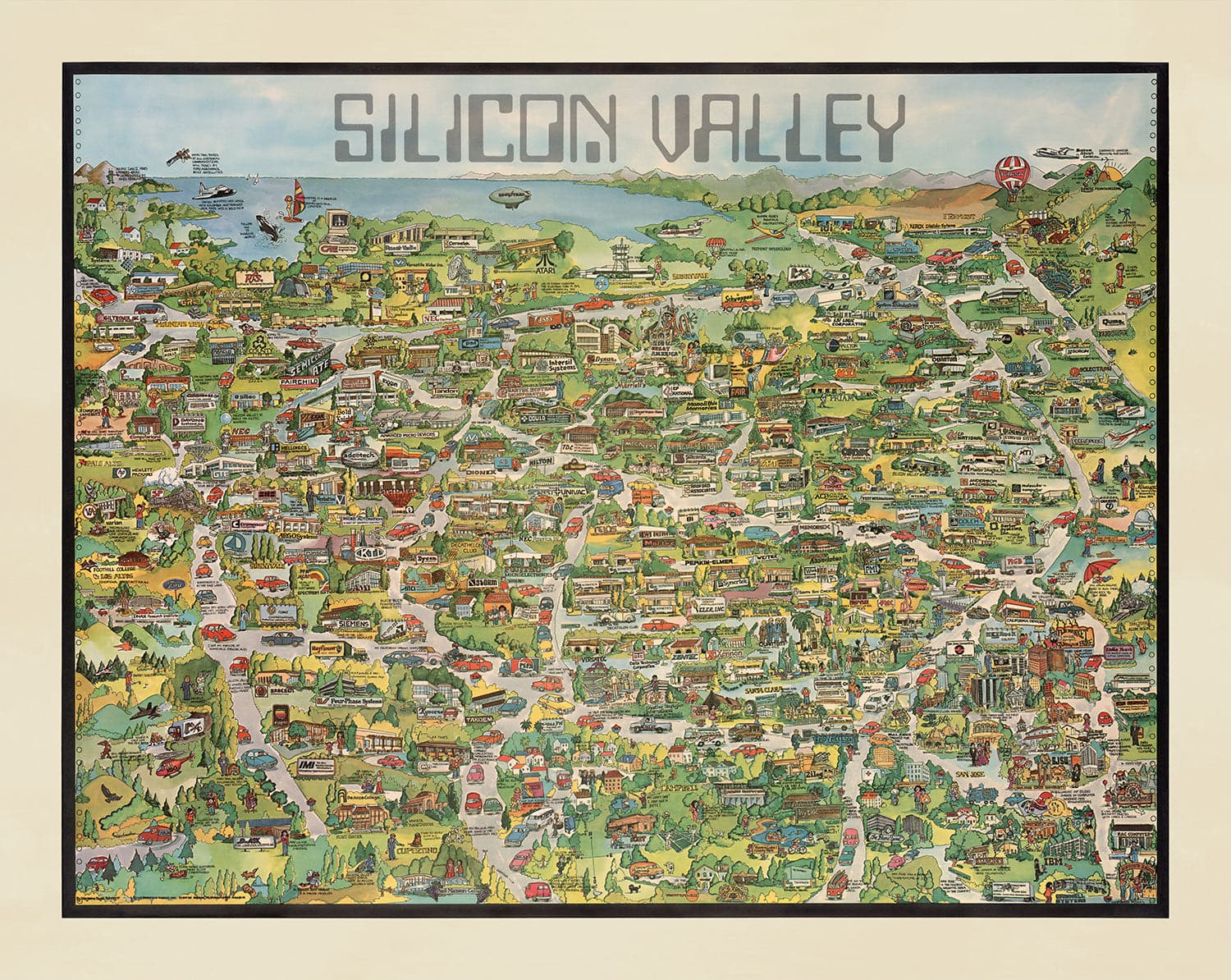 Old Map of Silicon Valley, 1982: Pictorial Chart of Mountainview, Sunnyvale, Cupertino, San Jose, Fremont