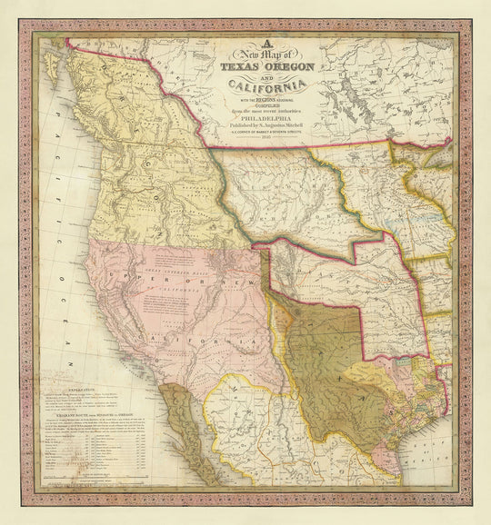This wonderful old map of the Western United States of America, California, Oregon and Texas was originally published in 1846. It was created by Samuel Mitchell.