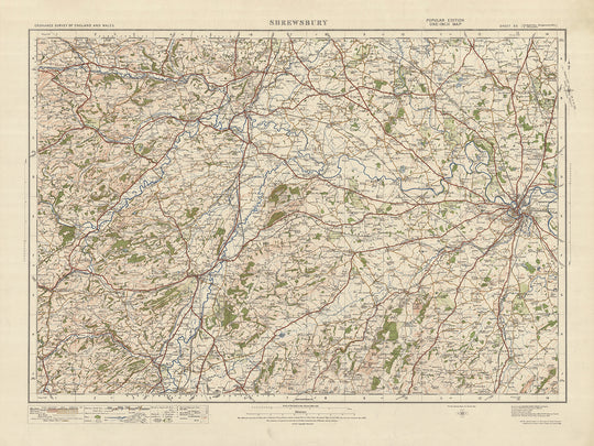 This remarkable product is an original copy of the Ordnance Survey's One-inch "Popular" edition map, specifically Sheet 60 - Shrewsbury, published in 1925. The map showcases various towns, cities, and captivating features, providing a fascinating glimpse into the past. Notably, it includes the historic county town of Shrewsbury, situated in Shropshire, England.