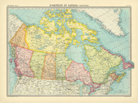 Step into the early twentieth century with the “Dominion of Canada – political” map, a masterwork by the celebrated British cartographer J. G. Bartholomew, published in 1922. This map, produced for the prestigious Times Atlas & Gazetteer of the World, marked a pivotal moment in cartographic history, ushering in a new era of clarity and precision in geographic representation. Bartholomew’s meticulous approach is evident in every detail, from the careful delineation of provincial borders to the nuanced depiction of Canada’s vast and varied terrain. This map is not merely a record of political boundaries; it is a window into the aspirations and realities of a young nation still defining its place on the world stage.