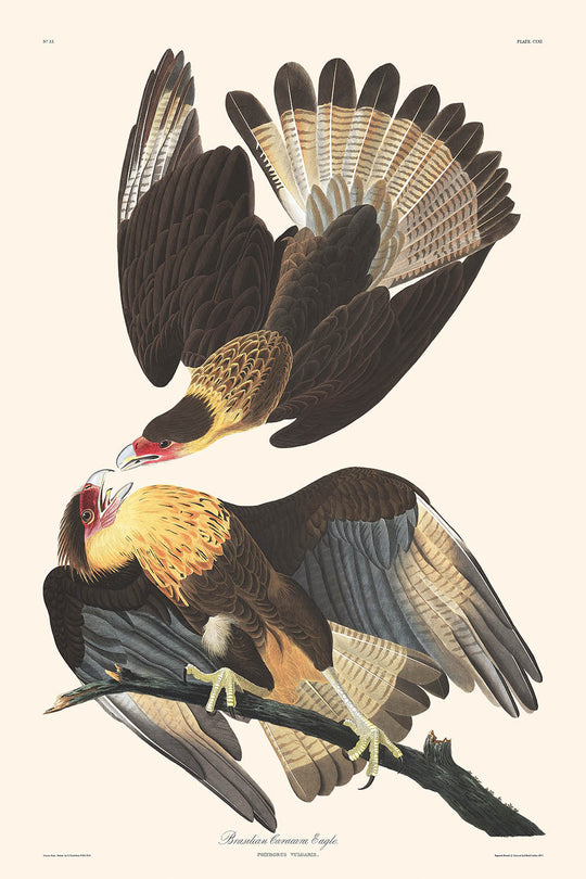 Introducing the stunning "Brasilian Caracara Eagle" (Plate 161), created by the renowned John James Audubon and first published in 1827 as part of his illustrious series, "The Birds of America." This meticulous illustration captures the magnificent Caracara Eagle in vivid detail, embodying Audubon's exquisite attention to the natural world's intricacies.