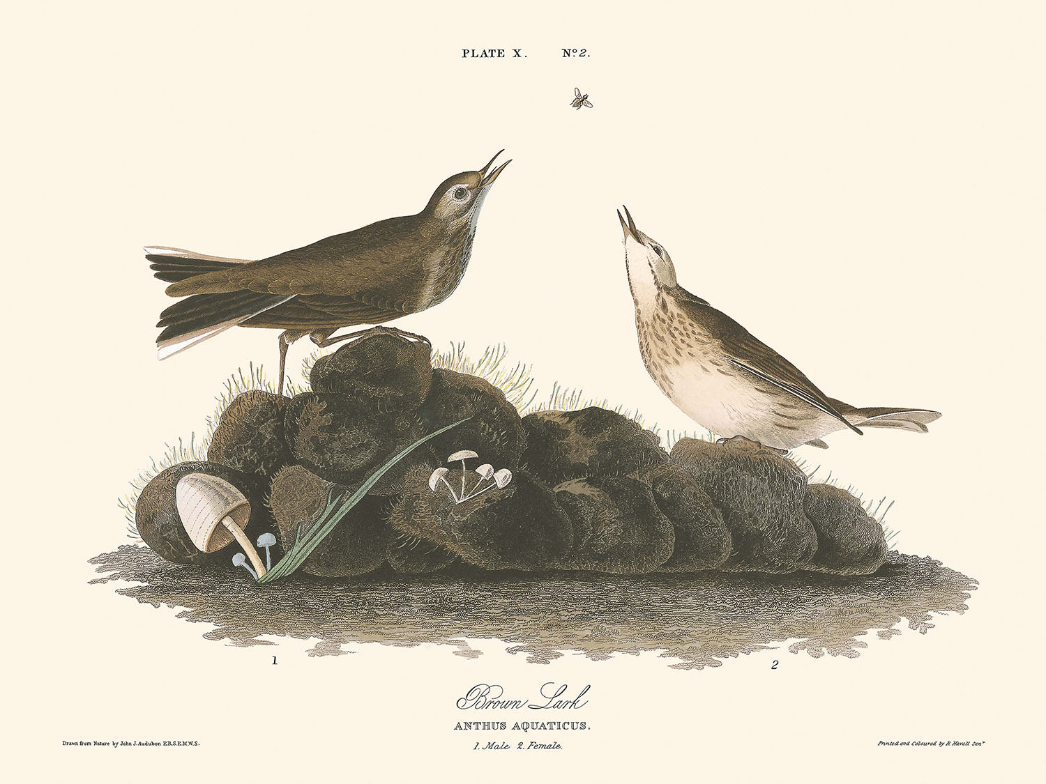"Brown Lark (Plate 10)," first published in 1827, is a captivating illustration from John James Audubon's seminal work, The Birds of America. With its taut detailing and realistic portrayal, this piece masterfully captures the elegance and subtle beauty of the lark.