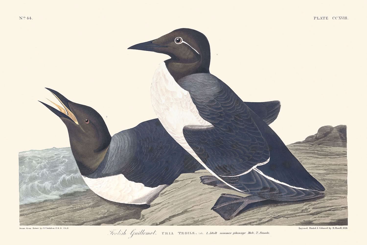 Foolish Guillemot, first published in 1827, is an extraordinary bird illustration from John James Audubon's renowned volume, The Birds of America. This artwork beautifully captures the essence and rich detail characteristic of Audubon’s awe-inspiring collection.