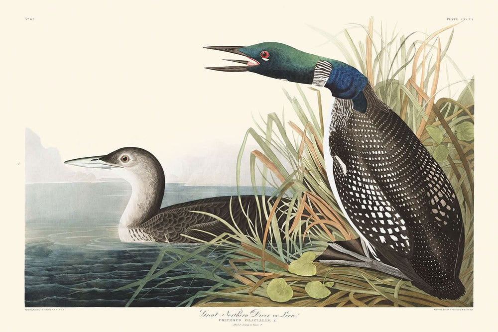 The Great Northern Diver, or Loon, first published in 1827, is among the most captivating illustrations from John James Audubon's celebrated work, The Birds of America. This remarkable depiction captures the essence and beauty of this intriguing bird, which is renowned for its strong, active, and vigilant nature.