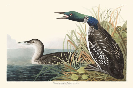 This artwork not only highlights Audubon's exceptional ability to capture the intricate details and nuances of avian life but also serves as an homage to the bird's dynamic lifestyle. The Loon's unique flight and diving capabilities, coupled with its haunting calls, are wonderfully captured in the illustration, inviting an admiration for nature's exquisite design. The painting displays an enchanting blend of colors and forms that are exquisitely layered to portray the Loon in a vibrant and lifelike manner.