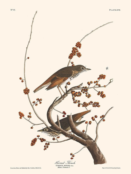 Owning this print means capturing a piece of natural history and artistic brilliance. The harmonized palette of earth tones and the intimate portrayal of the Hermit Thrush nestling among branches give it an appealing charm, making it a perfect gift for any occasion, be it Christmas, Father's Day, or a housewarming celebration. Ideal for those with a keen interest in nature or a love of classic art, this print stands as a testament to Audubon's enduring legacy and the wonders of the natural world.