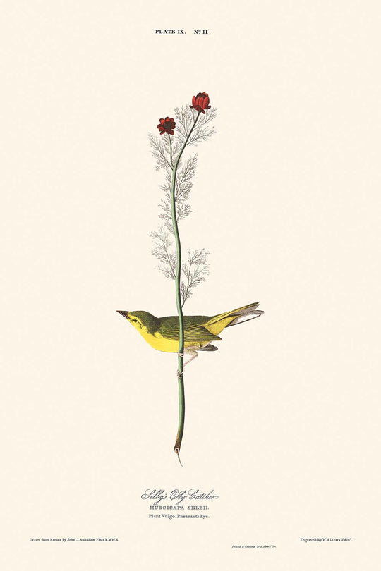 The appeal of this artwork lies in Audubon's masterful use of color and composition. In Selby's Fly Catcher, soft strokes of olive green complement the bold contrasting yellows, vivid blues, and deep reds that describe the flycatcher's features. Audubon's ability to bring these birds to life on paper gives each print a charm that bird enthusiasts and art lovers alike will appreciate.
