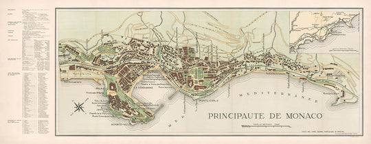 Historically significant, this map was created during World War II, a period of global upheaval and transformation. It reflects Monaco's resilience and its continued allure as a haven of luxury and culture. Whether you are a history enthusiast, a cartography aficionado, or a lover of Monaco's timeless elegance, this map offers a fascinating journey through time, inviting you to explore the storied streets and rich heritage of one of the world's most enchanting cities.
