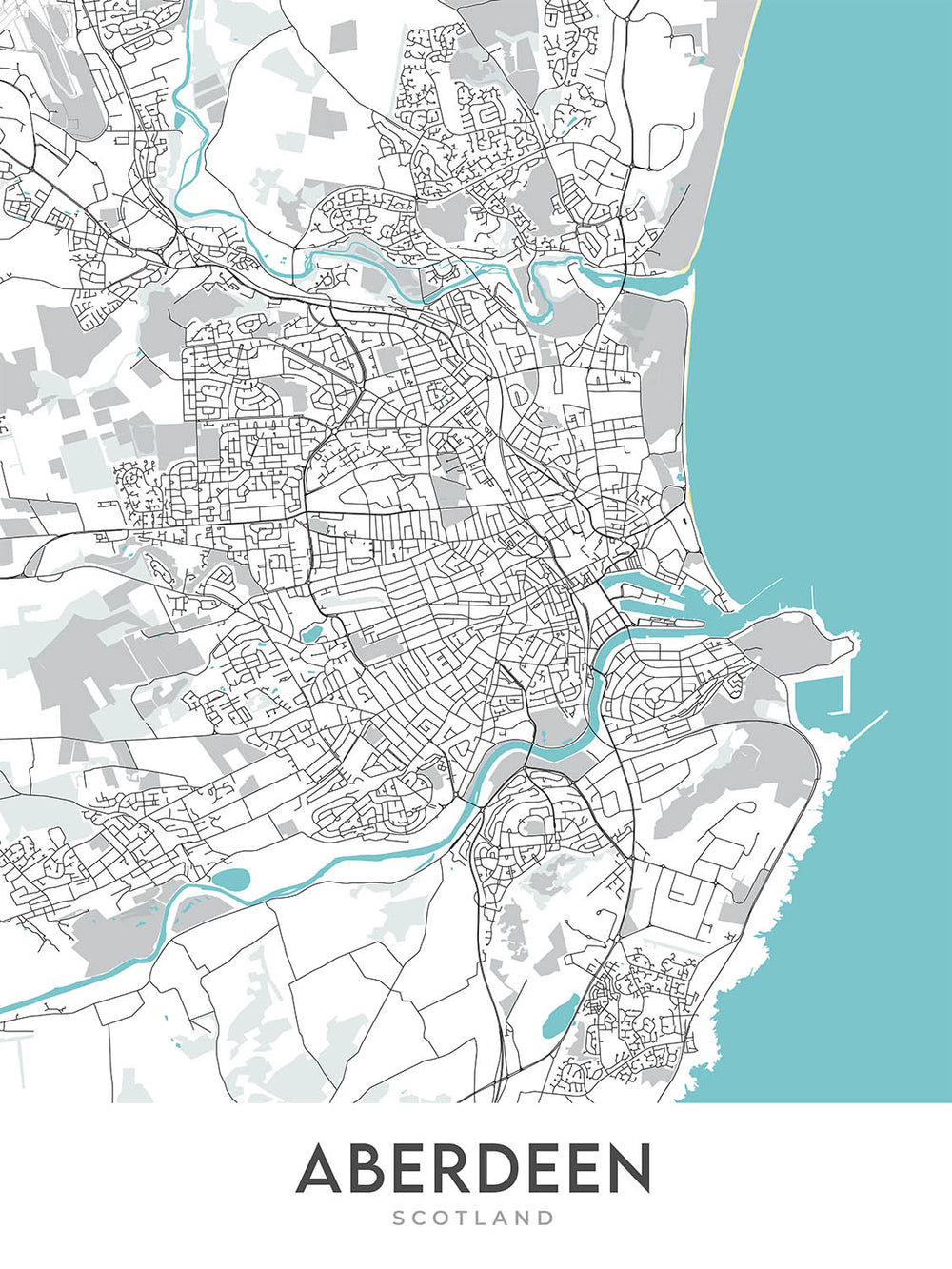 Perfect for those with an eye for design, the Aberdeen map by The Unique Maps Co. serves both as a beautiful piece of wall art and a tribute to the city it represents. Its modern, label-free design makes it an ideal addition to any space needing a touch of sophistication. Whether you are a resident of Aberdeen, a frequent visitor, or someone who simply admires the beauty of urban landscapes, this map is a timeless piece that brings the charm and allure of Aberdeen into your home.