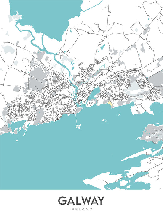 Modern City Map of Galway, Ireland: City Centre, West End, Salthill, Galway Cathedral, N6