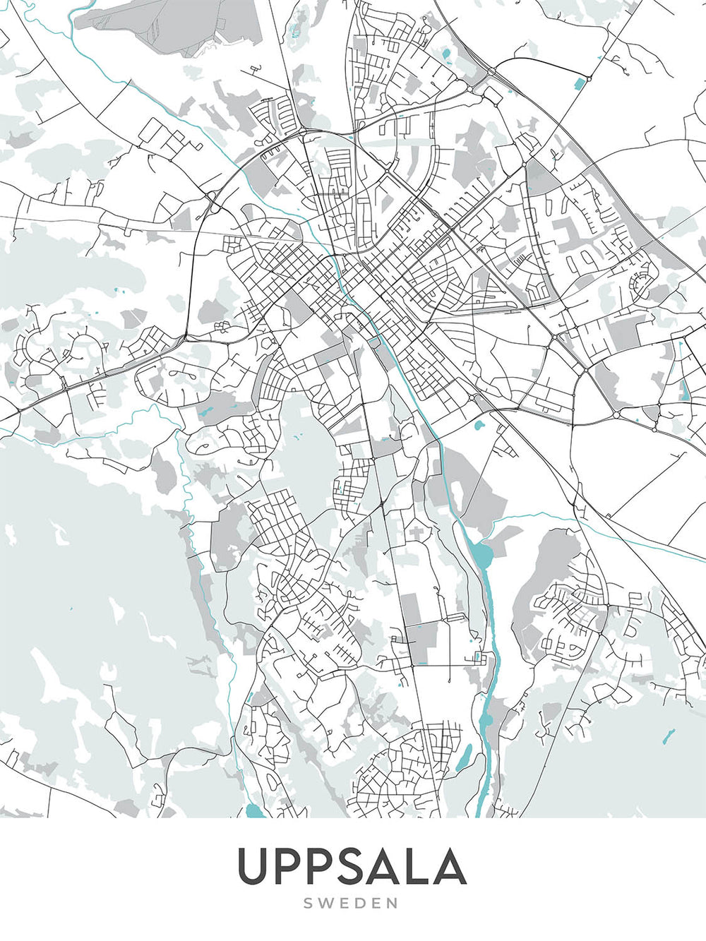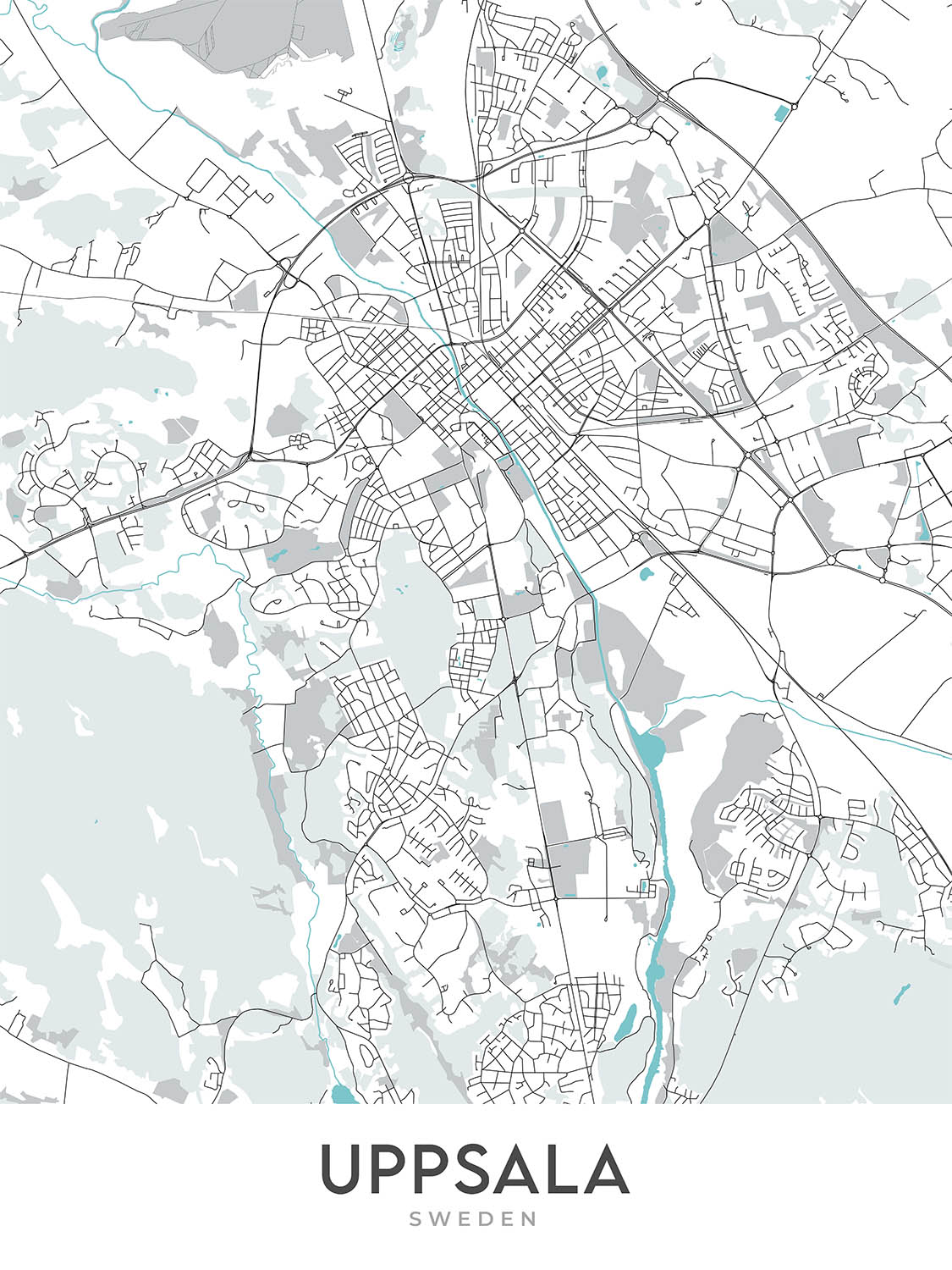 This map of Uppsala, Sweden, is a modern marvel of cartography and design. Created by The Unique Maps Co. in 2024, this map is a celebration of the city's unique character and charm. The map focuses on the central area of Uppsala, capturing the essence of this vibrant city. From the historic city center to the modern suburbs, this map provides an unparalleled view of Uppsala's diverse neighborhoods and landmarks.
