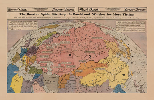 A truly fascinating map, put together by Howard Burke and published in the Los Angeles Examiner newspaper, shows a very brief period in World War 2 where the USSR was allied with Nazi Germany.