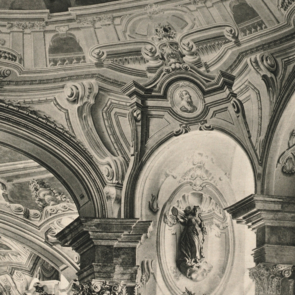 The restrained color scheme amplifies the poster’s elegance. Creamy whites and warm beiges wash the architecture in soft light, while subtle browns anchor the base and sculptural accents. The delicate fresco tones overhead contrast with the crisp geometry of the shelves below, and the steady axial perspective lends a sense of calm order. This harmony of color and line makes the print an easy fit for neutral interiors, reading rooms, and modern spaces seeking a touch of classical grandeur. If you’ve strolled through Admont or plan to, this view captures the feeling of standing at the library’s threshold and looking down its luminous nave.