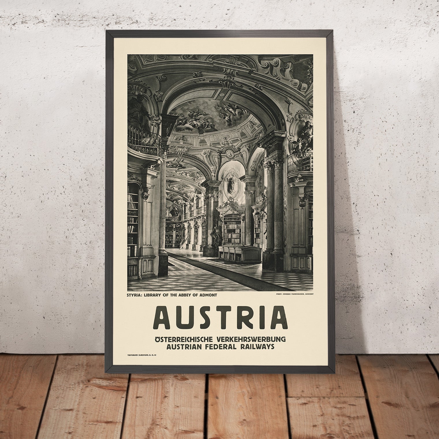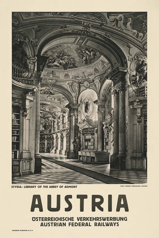 Styria Travel Poster: Library of the Abbey of Admont by Conrad Fankhauser