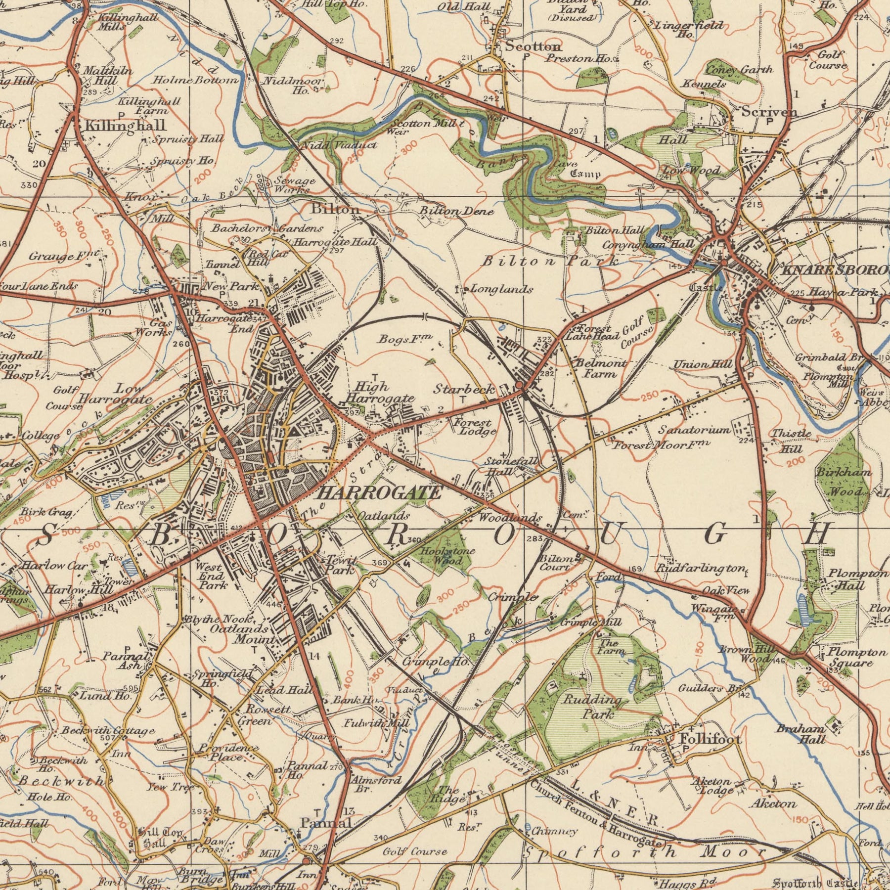 Immerse yourself in the past with this captivating map, and uncover the secrets, history, and natural beauty of Harrogate and its surrounding towns. It's a treasure trove for history enthusiasts, cartography aficionados, and anyone captivated by the allure of the past.