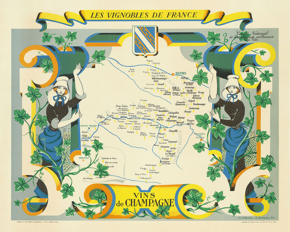 - Name of the map: Les Vignobles De France -- Vins De Champagne (The Vineyards of France -- Wines of Champagne)