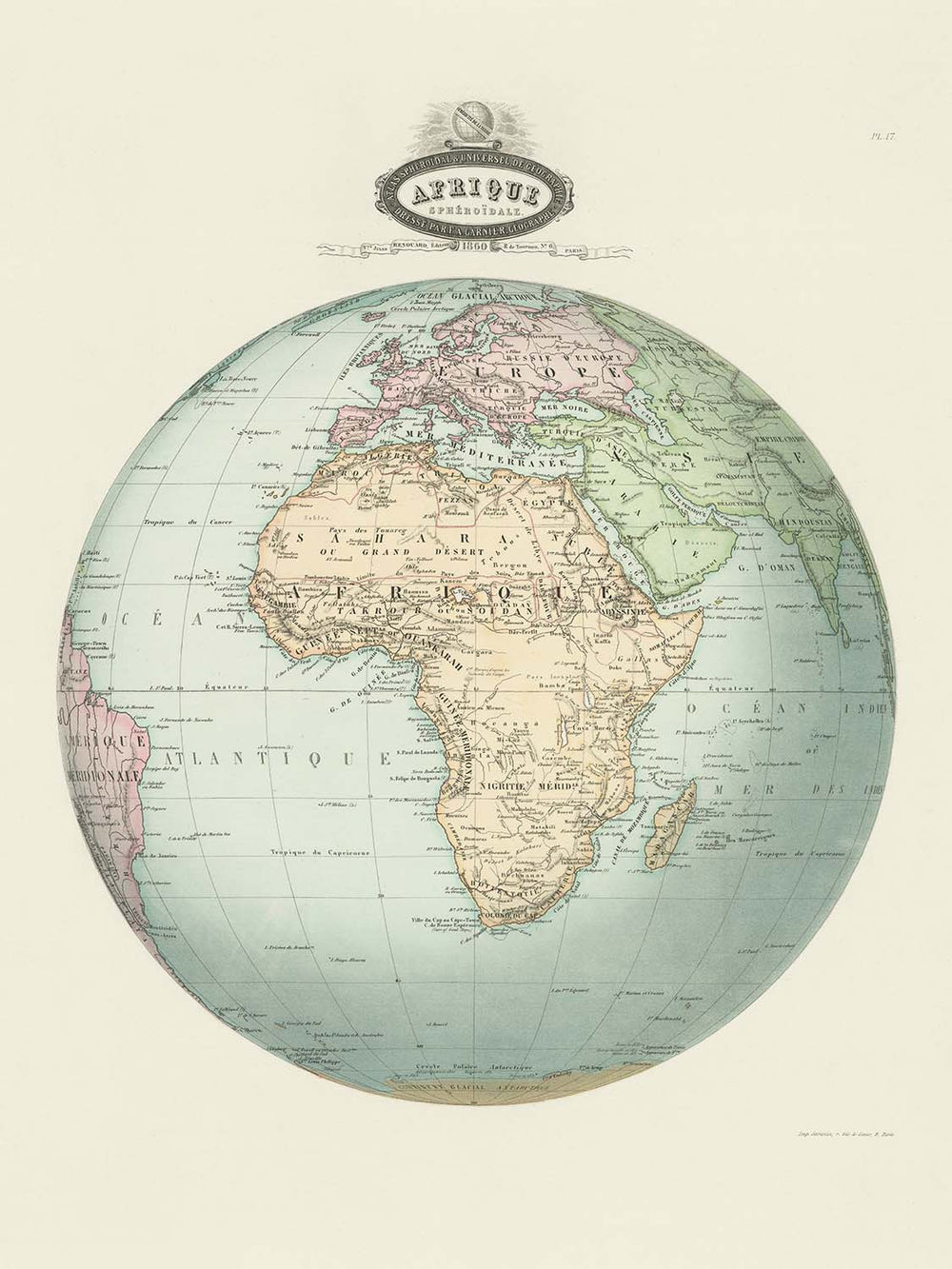 The design of the "Afrique Spheroidale" map is both innovative and aesthetically pleasing. By projecting Africa in a spheroidal form, Garnier emphasizes the continent's central role in the world. This decorative approach not only enhances the map's visual appeal but also serves as a reminder of Africa's historical importance. The map's elegant layout and vibrant colors reflect the artistic sensibilities of the time, making it a coveted piece for collectors and history enthusiasts alike.