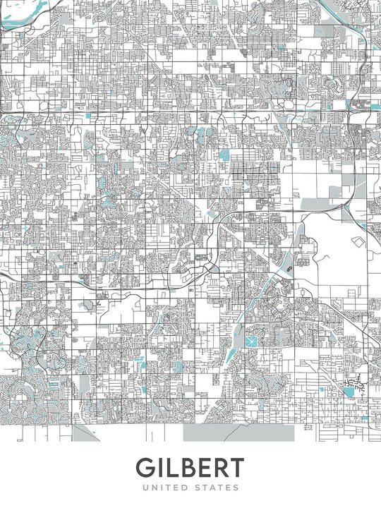 Overall, this map of Gilbert, Arizona, is a comprehensive and stylish representation of the city and its surroundings. It is an essential tool for anyone who wants to explore the area or simply add a touch of modern design to their home or office.