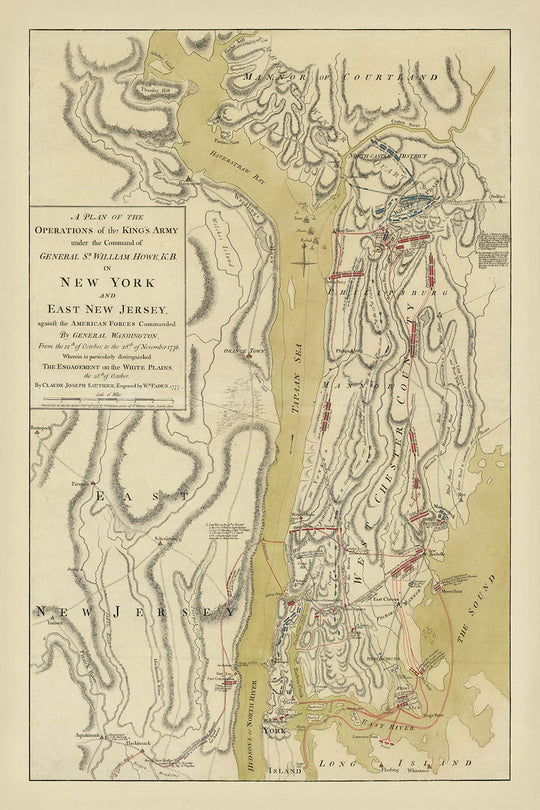 - Name of the map: A Plan of the Operations of the King's Army under the Command of General Sr. William Howe, K.B. in New York and East New Jersey, against the American Forces Commanded By General Washington, From the 12th of October to the 28th of November 1776