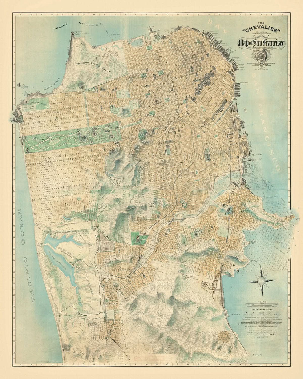 - Name of the map: The "Chevalier" Commercial, Pictorial and Tourist Map of San Francisco.