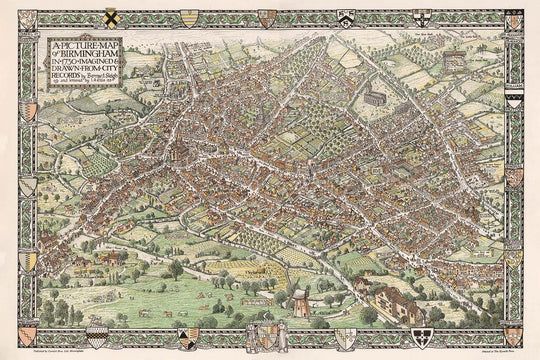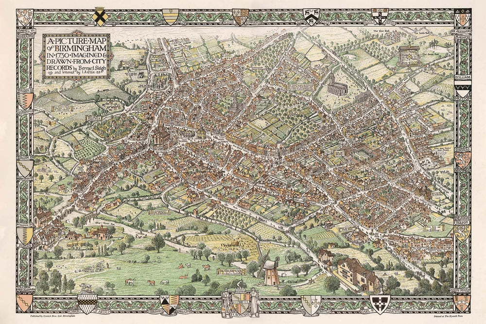 This unusual, old map is what Birmingham looked like in 1730 - but it was actually created in 1923 by Bernard Sleigh using official records.