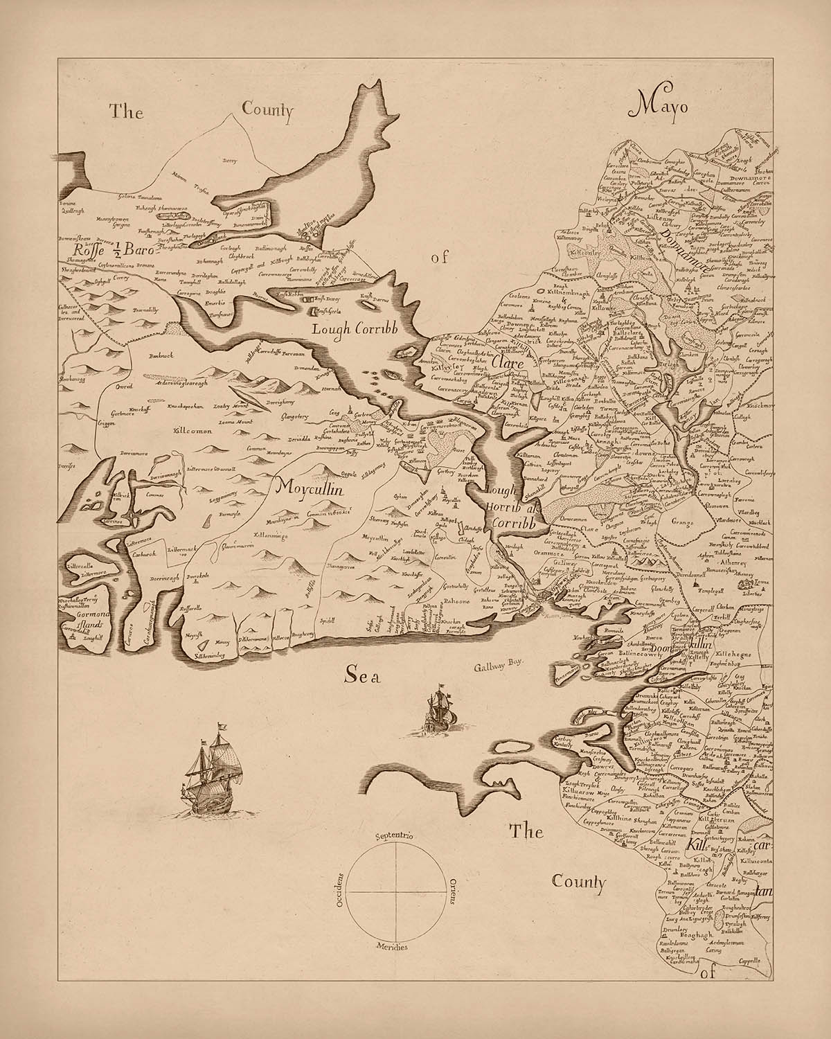 Old Map of County Galway, 1685: Galway, Connemara, Lough Corrib, Kylemore Abbey, Aran Islands