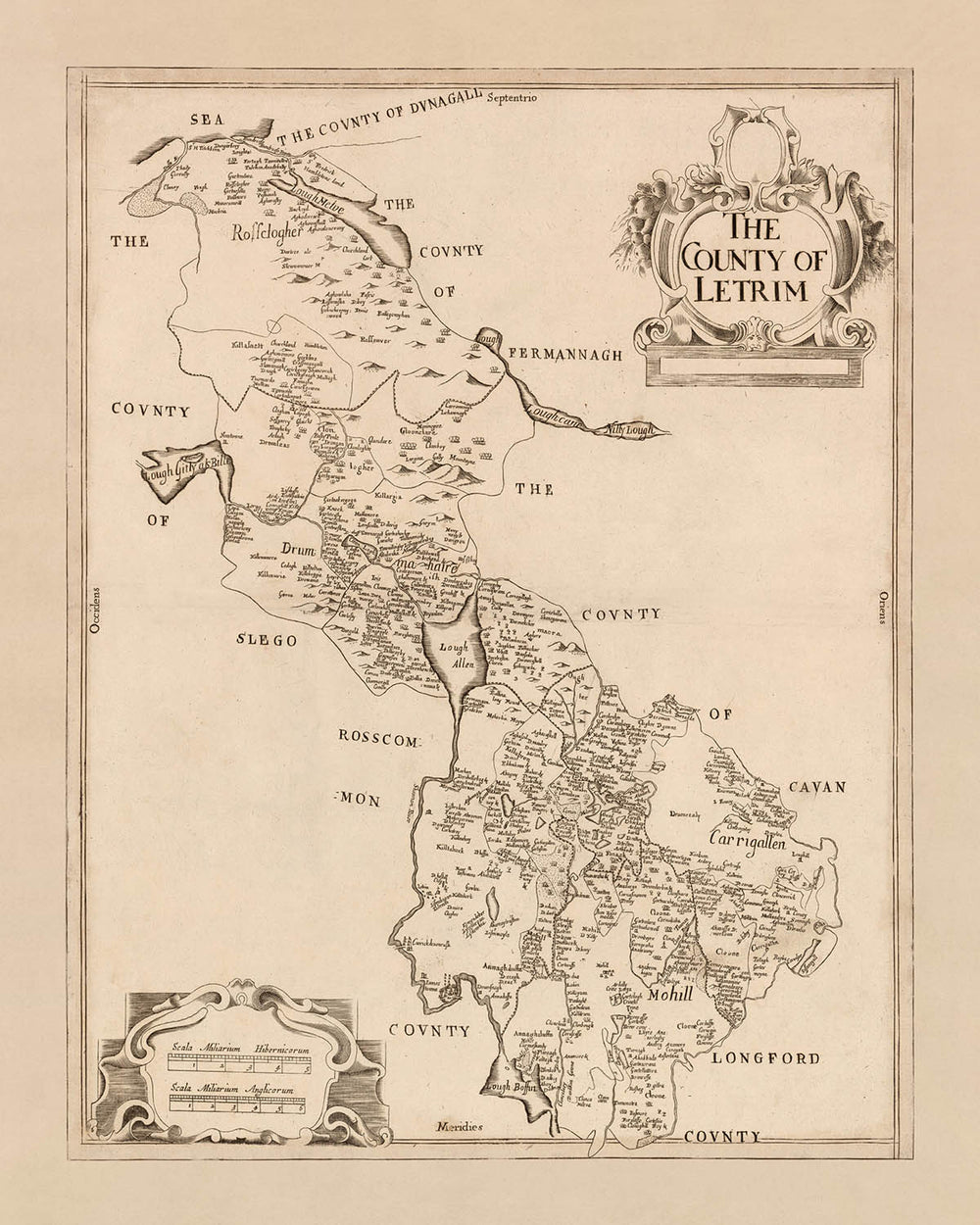 Old Map of County Leitrim by Petty, 1685: Carrick-on-Shannon, Jamestown, Ballinamore, Mohill, Carrigallen, Down Survey