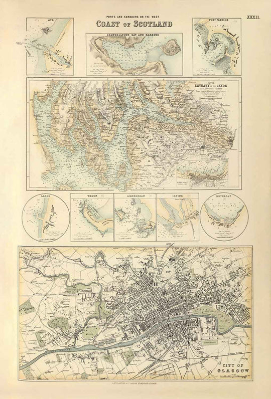 Old Map of the Ports & Harbours of the West Coast of Scotland, 1872 by Fullarton: Glasgow, Largs, Portpatrick, Irvine, Ayr
