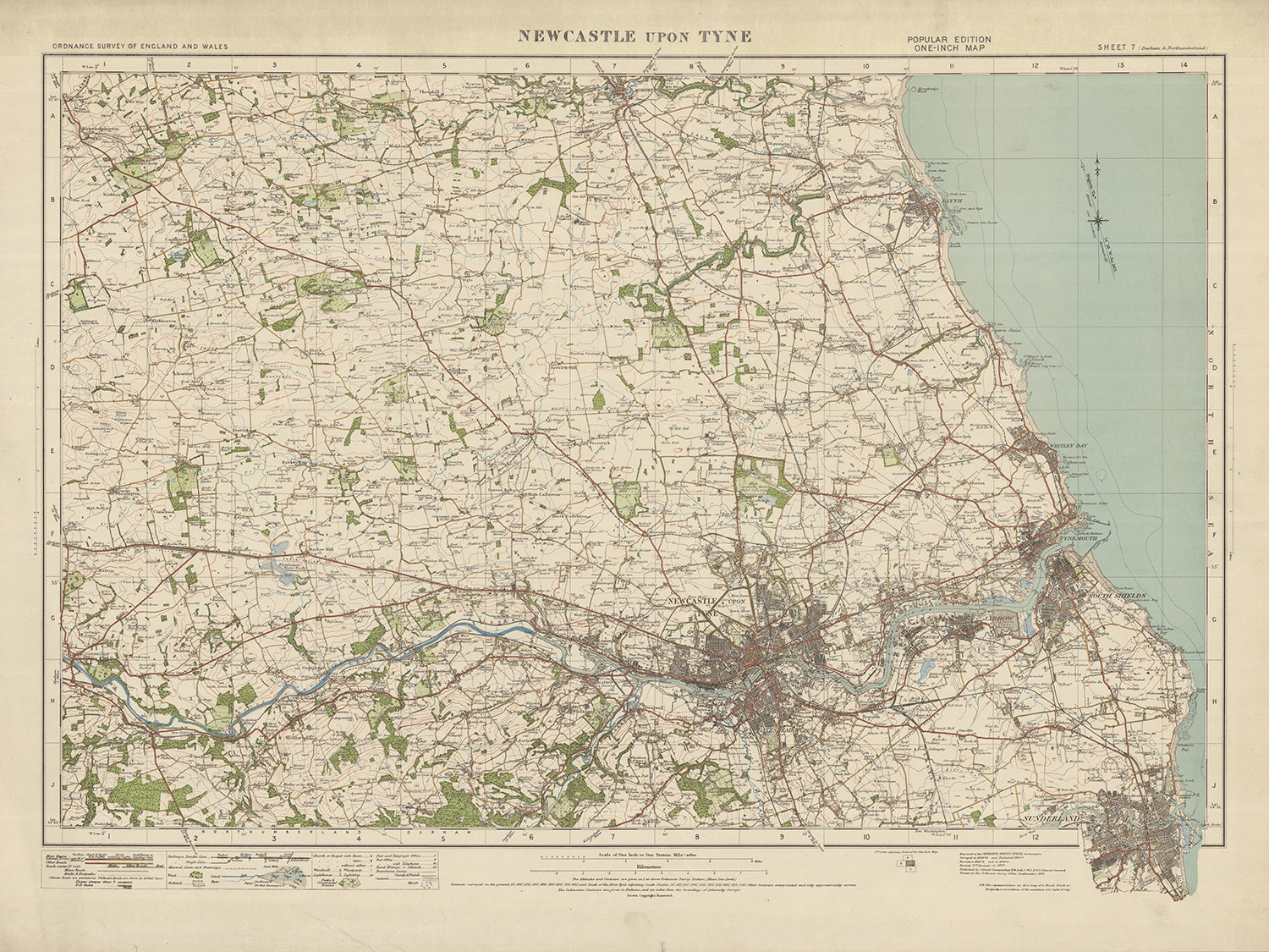 Old Ordnance Survey Map, Sheet 7: Newcastle Upon Tyne, 1919-1926: Gateshead, Whitley Bay, Blaydon, Cramlington, Tyne River, Hadrian's Wall
