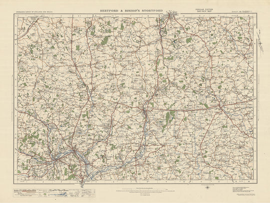 Hertford & Bishops Stortford, located in the historic county of Hertfordshire, take center stage on this map. These two towns have witnessed centuries of history and have played significant roles in the region's development. Explore their streets, landmarks, and the surrounding areas as they appeared in 1925, and gain a deeper understanding of their historical importance.