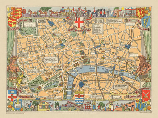 Leslie George Bullock's creation is more than just a map; it is a historical artifact that reflects the educational and cultural values of its time. The detailed illustrations and vibrant colors make it a unique piece that stands out in the world of cartography. This map is not only a testament to Bullock's artistic talent but also a celebration of London's enduring allure and historical significance.