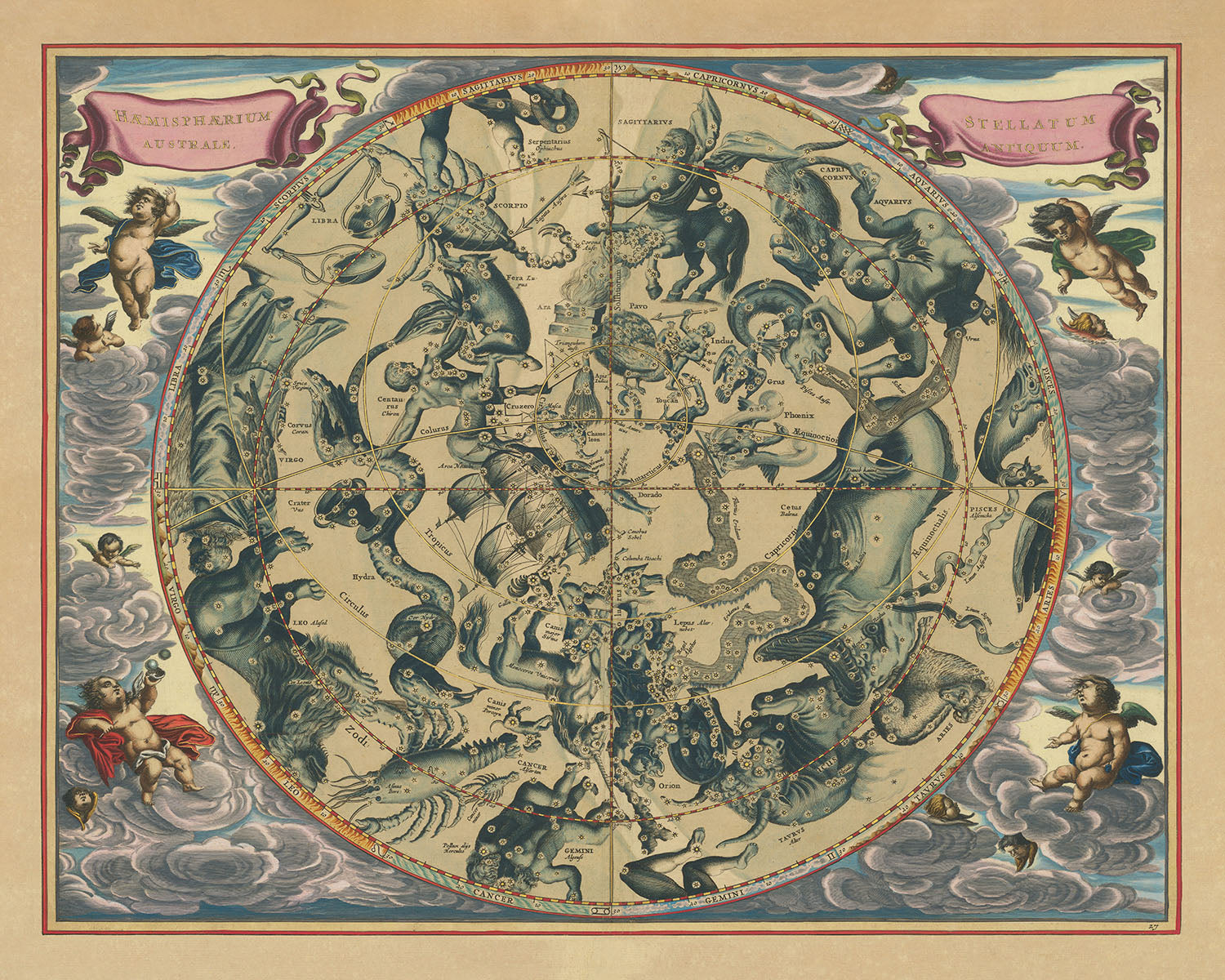 Celestial Chart of Southern Constellations by Andreas Cellarius, 1661