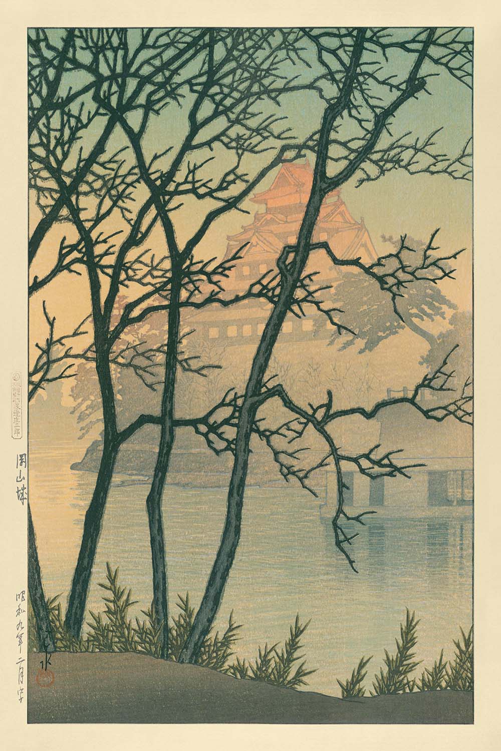 Dawn at Okayama Castle by Hasui Kawase, 1935
