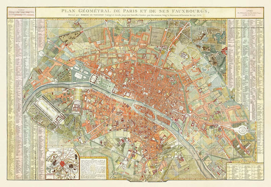 Old Map of Paris, France by Delamarche in 1797: Louvre, Notre Dame, Sainte-Chapelle, Seine, Revolution, Invalides