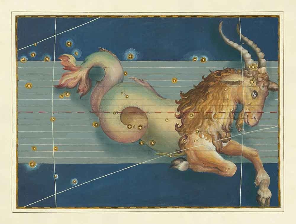 This star map was originally published in 1603 in Johann Bayer's "Uranometria," perhaps the most influential star atlas ever published and the forerunner of all modern star atlases. It contained 51 highly accurate star charts, 48 of which were the Ptolemaic constellations. And, of course, the 12 major signs of the Zodiac, including this lovely Capricorn, were all included.