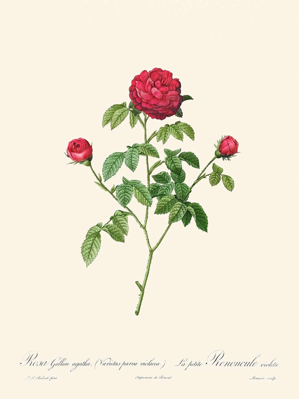 The Provence or French Rose is distinguished not only by Redouté’s precise linework and realistic color palette but also by its ability to convey the intricate charm of the rose species. The harmonious blend of soft pink hues and verdant foliage makes this print an exquisite addition to any botanical collection. Whether displayed in a classic or modern setting, this artwork enriches the space with its timeless beauty and brings the serene allure of a bygone era into the present.