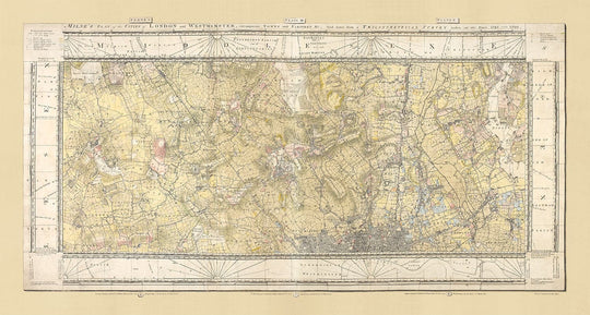 Rare Old Map of London and Suburbs, 1799 by Milne: City, Hackney, Westminster, Dalston, Hampstead, Fields