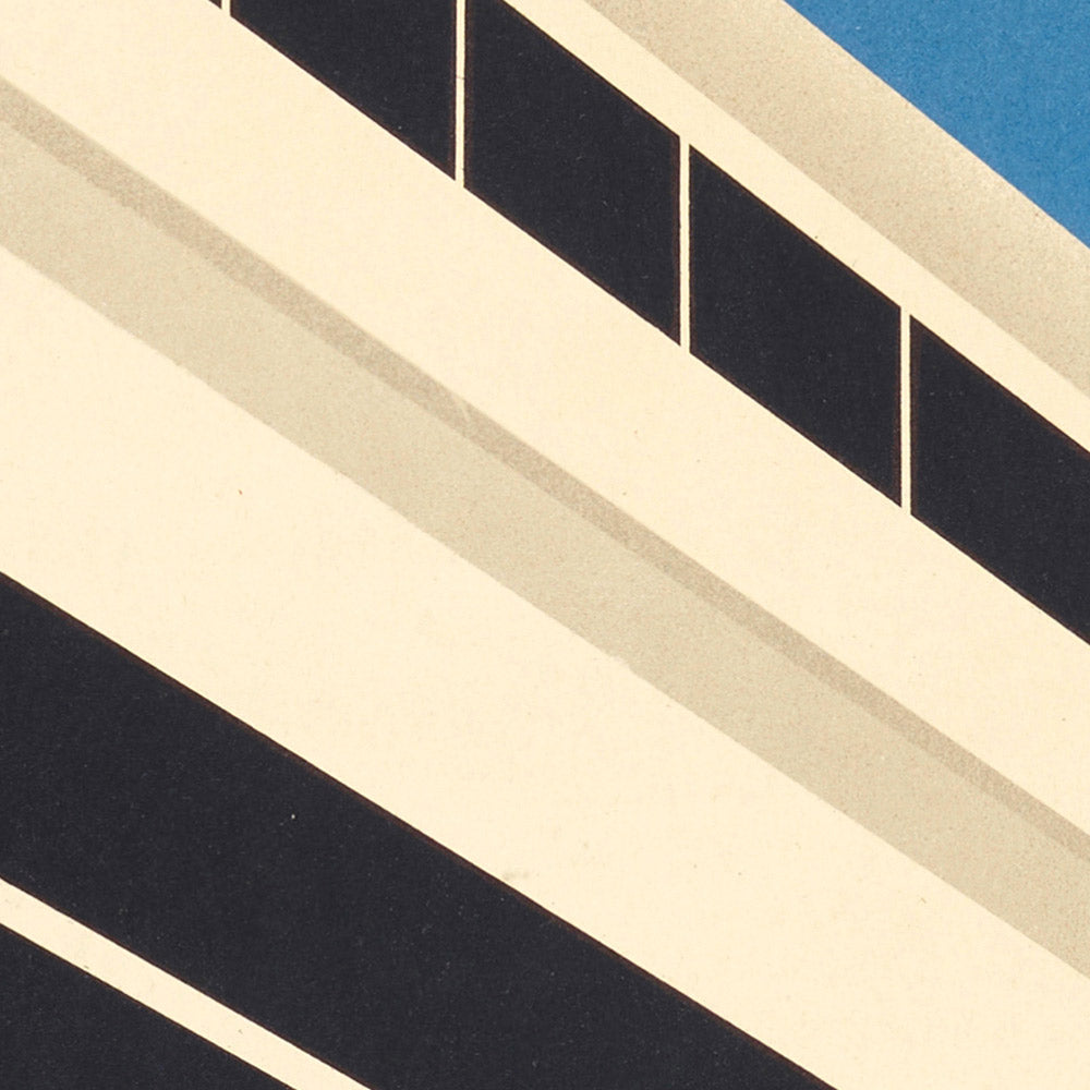 About the artist: Although detailed biographical records for George Hemming are scarce, he can be placed among the accomplished British commercial artists active between the wars, when poster studios in London turned out sophisticated graphics for railways, shipping lines, and tourism boards. Hemming’s work shows a keen understanding of the Art Deco idiom—clean geometry, controlled color, and legible, high‑impact lettering—designed to be read at a glance across a station concourse or booking hall.