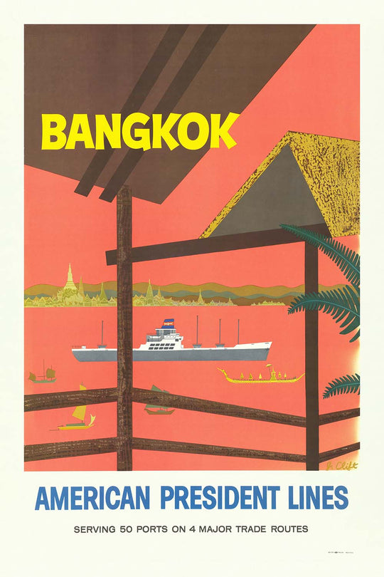 Bangkok Travel Poster: American President Lines by J. Clift, 1958